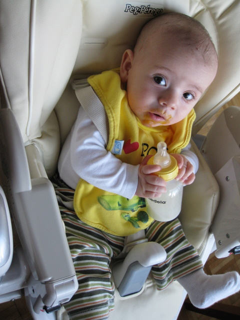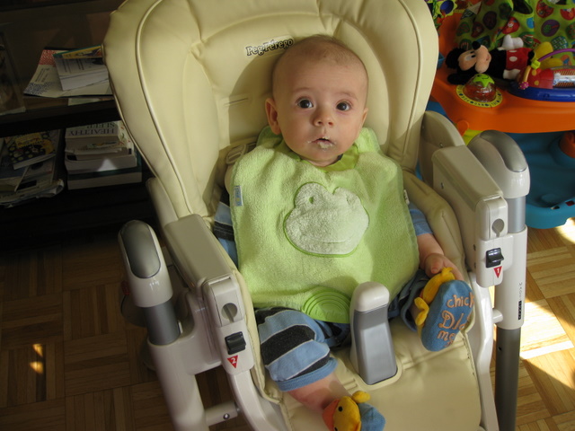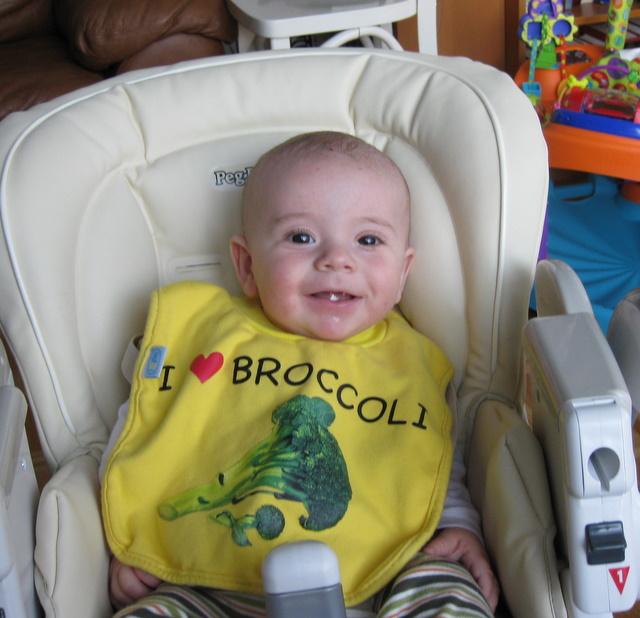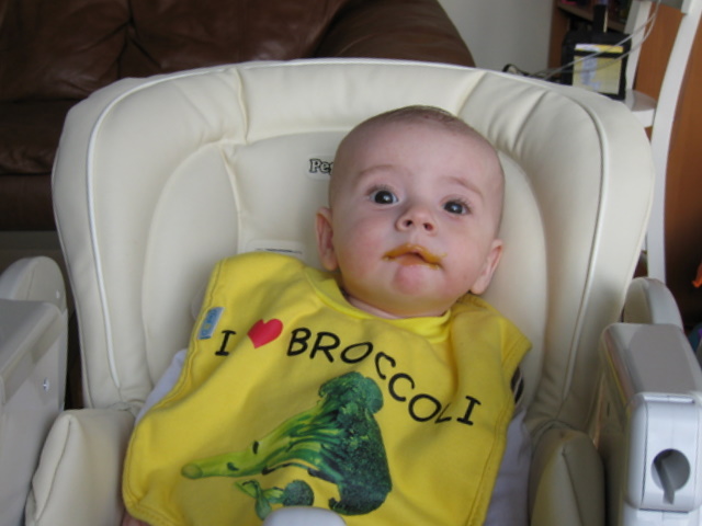 Despite what his bib says, Ben was about to eat sweet potatoes.