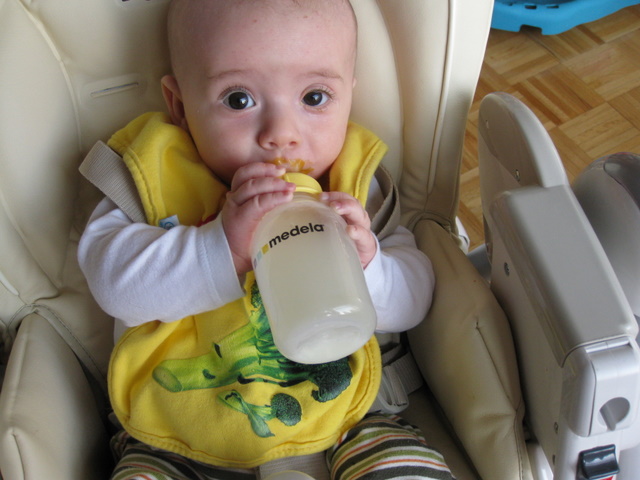 Washing the food down with a bottle of milk.