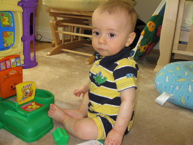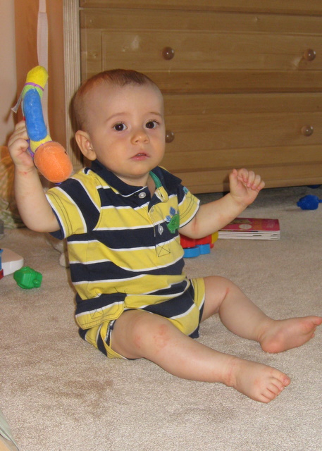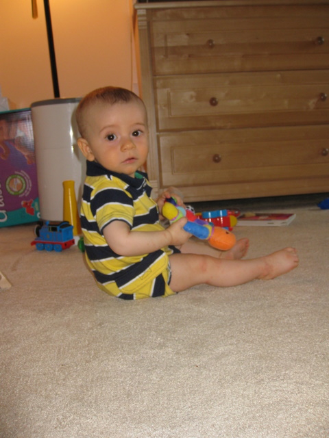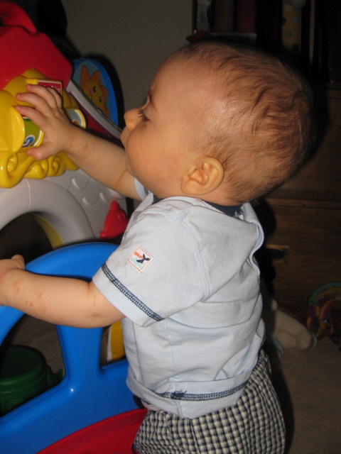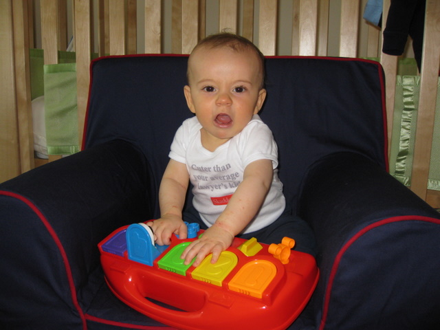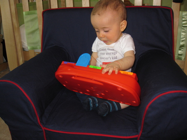 Playing on his new chair.