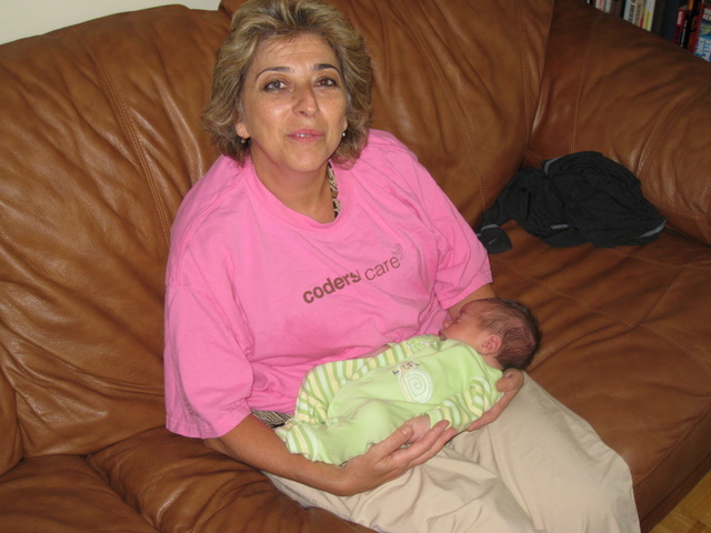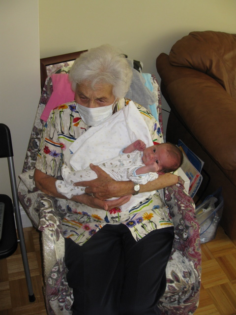 Grandma Evelyn thought it would be funny to wear a surgical mask.