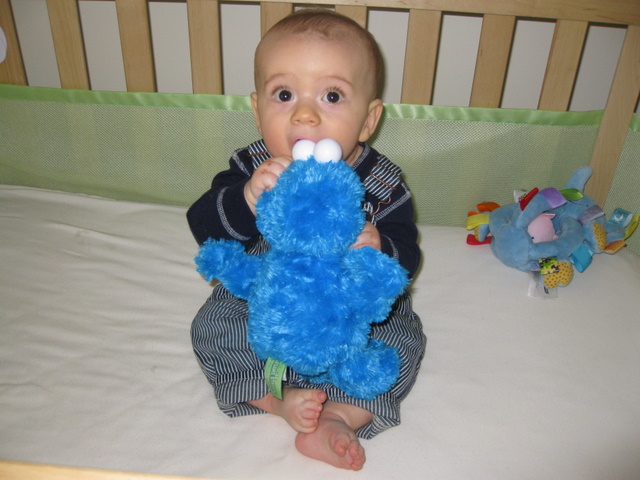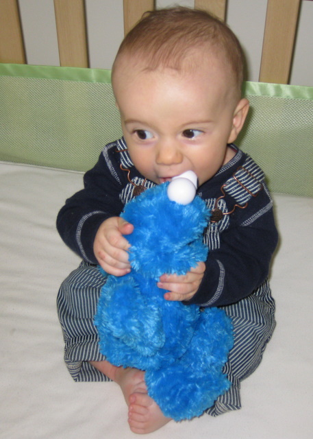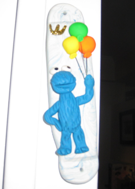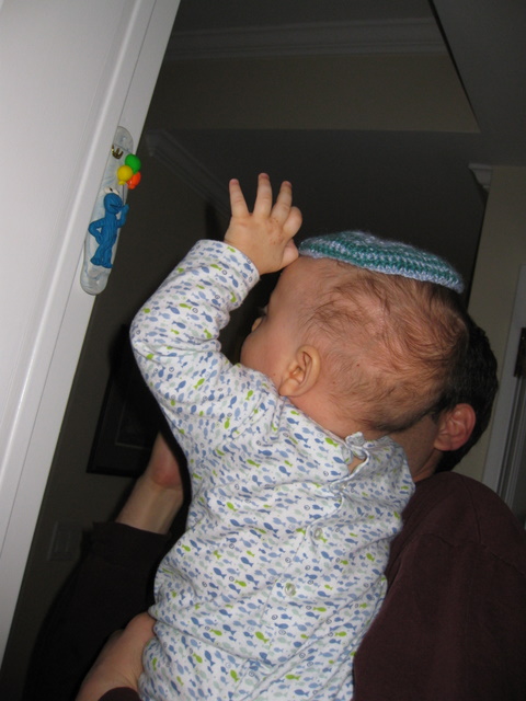 When we came back from Florida, we put up the Cookie Monster mezuza that Grandma Mania bought.