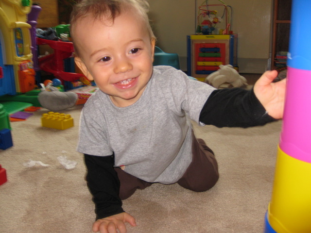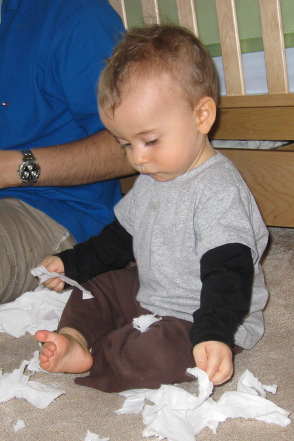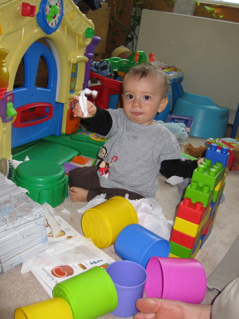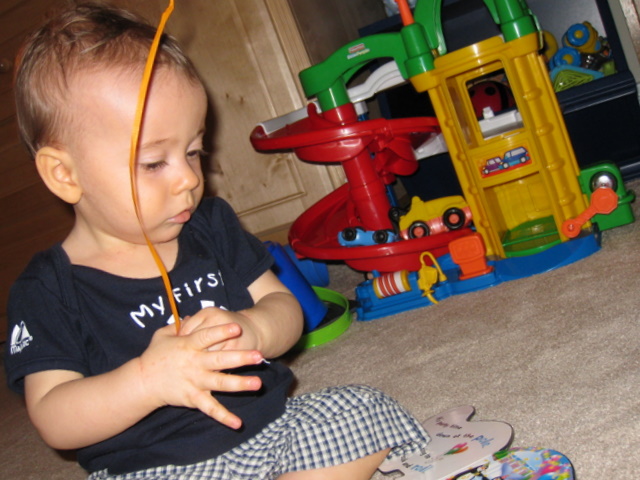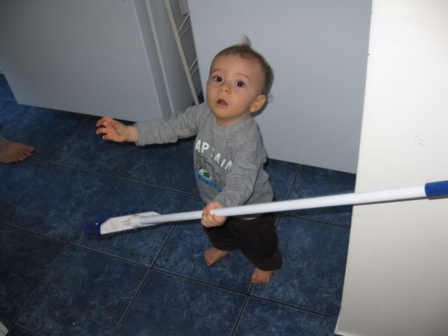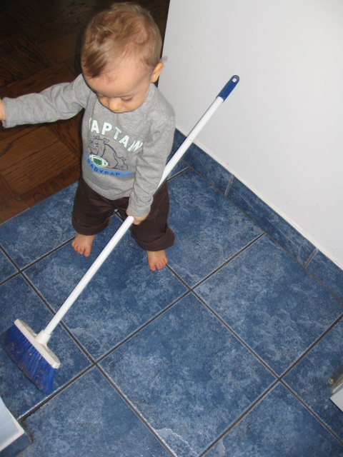 We went to Grandma Evelyn's apartment for Rosh Hashana -- Ben ran through the house with a broom.